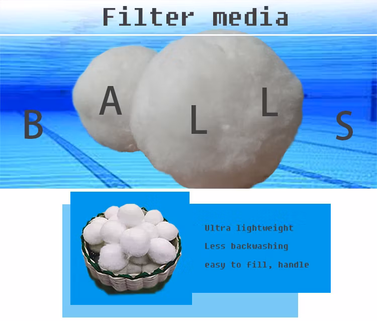 Las bolas de filtro está hecha de polietileno o de poliéster, eco-friendly material reciclable. Ahora es una alternativa de filtro de arena con la ventaja de un mejor efecto de filtrado, fácil de usar, la luz de manejar, no hay fugas de arena en la piscina, menos retrolavado, ahorro de energía.